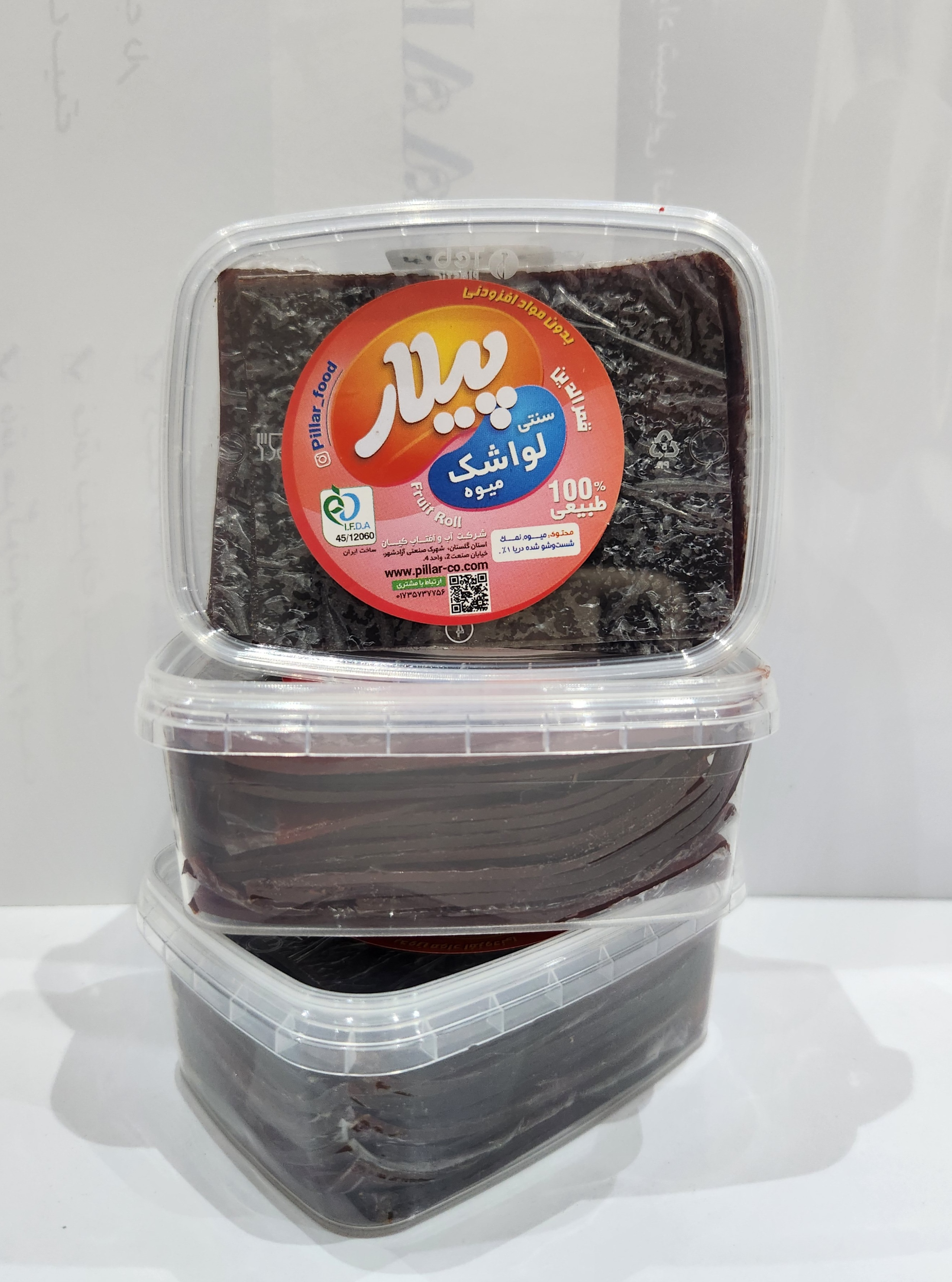 لواشک طبیعی ظرفی برند پیلار کاملا طبیعی شامل میوه و نمک دریا