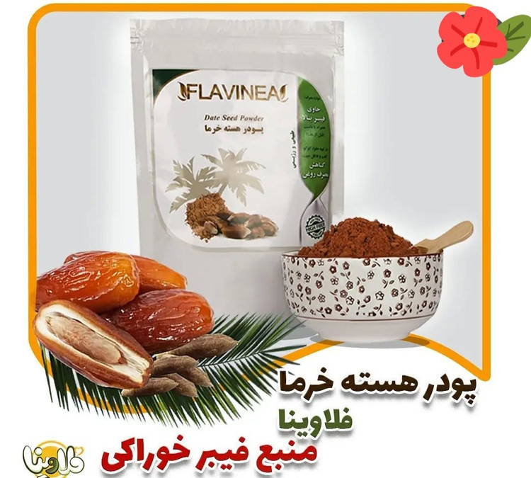 آرد هسته خرما حاوی عناصر معدنی مفید از جمله پتاسیم، فسفر، آهن، روی،سلنیوم و فیبر خوراکی و روغن های امگا ۶ و امگا ۹ میباشد